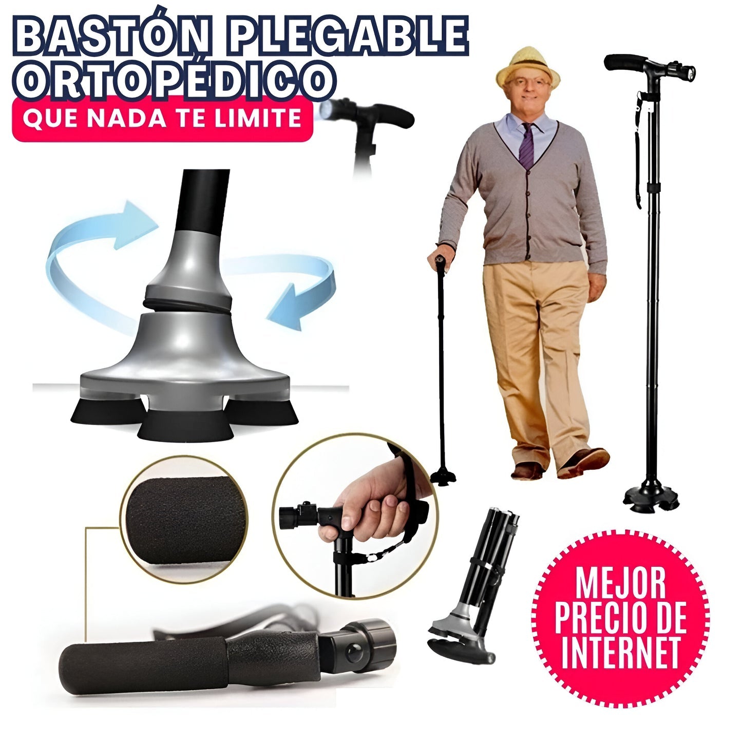 No dejes que el miedo a caer limite tu libertad. Te presentamos el revolucionario Bastón Plegable con Linterna, diseñado para darte seguridad en cada paso.