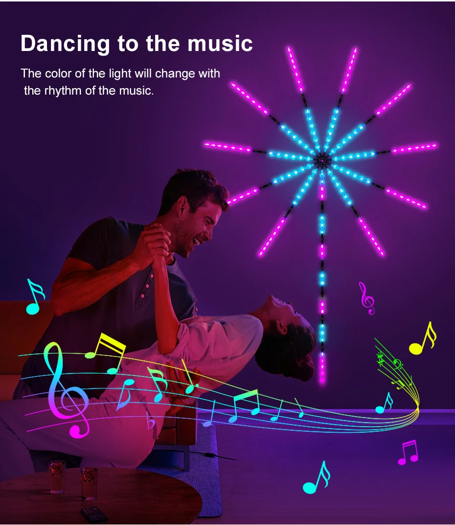 • Detección de sonido: la iluminación responde a la música, creando un show inmersivo al ritmo de tus canciones favoritas.