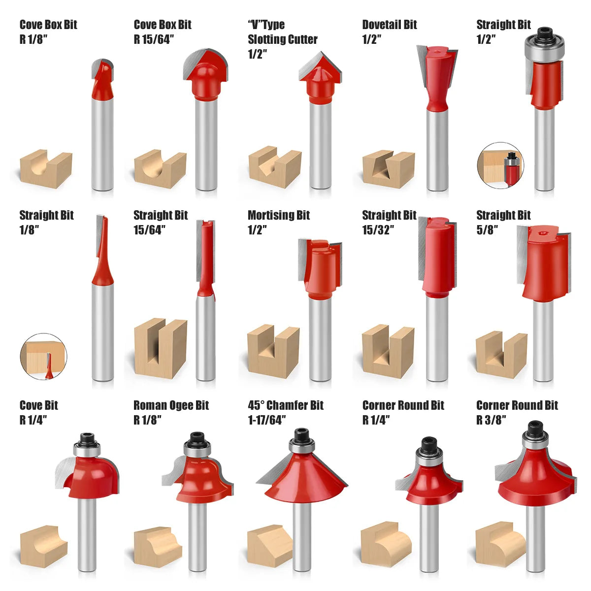 🛠️ Set de 15 piezas de Brocas para Router – Precisión y Versatilidad en tus manos