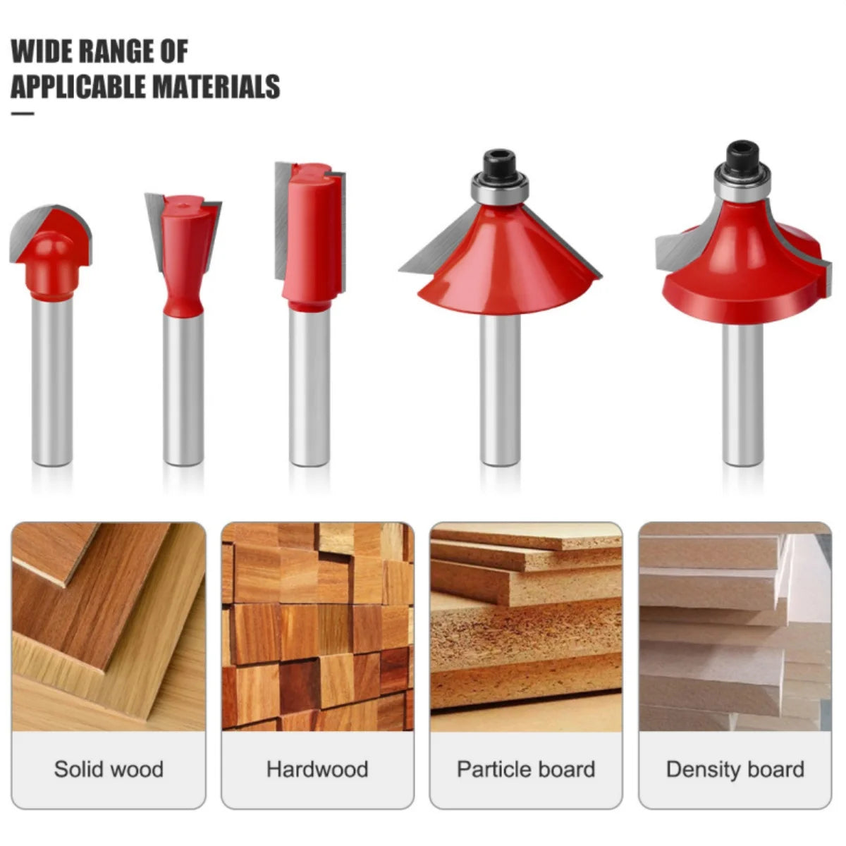 Cada broca está fabricada con carburo de tungsteno, un material resistente al desgaste que garantiza cortes más finos, mayor durabilidad y un rendimiento superior frente a maderas duras o blandas. Además, su recubrimiento rojo no solo aporta un diseño atractivo, sino que ayuda a identificar rápidamente cada pieza y a protegerlas contra la corrosión.