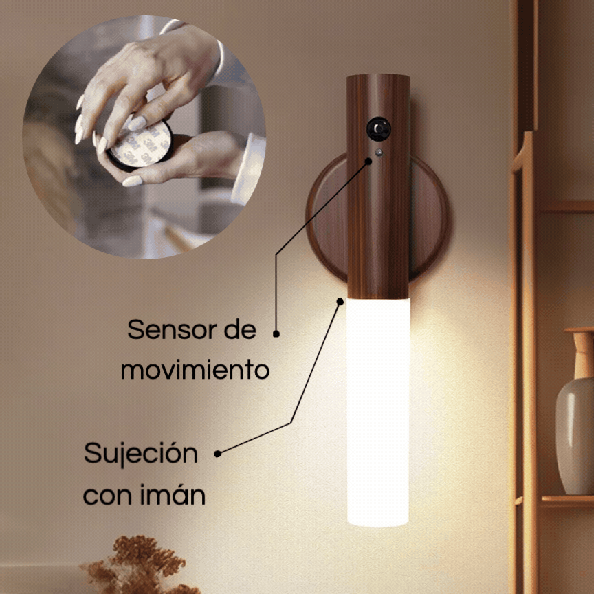 La luz se encenderá sola cuando detecte movimiento solo si es de noche. Diseño elegante y minimalista. Además la puedes coger fácilmente para llevártela a cualquier sitio. Se sujeta al soporte con un imán.